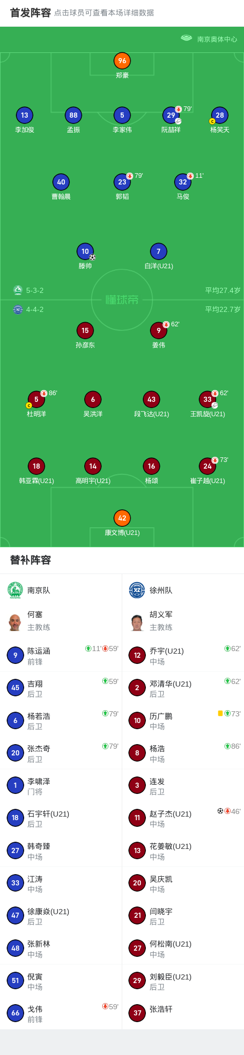 南京1-1徐州,滕帅破门,赵子杰建功